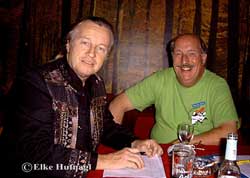 Der gebürtige Österreicher, Jahrgang 1945, kam im Alter von 10 Jahren nach Deutschland und begann seine Karriere als Schlagersänger 1969. „Geh nicht vorbei“ war ein Millionenhit, für den er den Silbernen Löwen von Radio Luxemburg und die Goldenen Europa erhielt. Ein Jahr später folgte der bis heute unvergessene und immer wieder beliebte Megahit „Es fährt ein Zug nach nirgendwo“, die erste Eigenkomposition von über 900 Liedern. In diesem Zeitraum zierte Anders die Titelblätter aller Jugendzeitschriften und viele Teenager waren in ihn verliebt. Anders verkaufte über 20 Millionen Schallplatten, schrieb 13 Bücher, 5 Drehbücher, 2 Musicals, ein Theaterstück (Der Mann der Aids erschuf), eine Sinfonie (Malibu-Sinfonie) und führte in 9 Filmen Regie. Lange lebte der ehemalige Klosterschüler in den USA. Anders moderierte wöchentlich die Fernsehshow „Lanoo on the book of light“, in der er Größen aus Show, Politik, Wissenschaft und Medizin interviewte. Als Autor bei Libri-Books on Demand gibt Christian Anders die buddhistische Lehre „im Sinne Buddhas“ weiter. Anders nennt sich auch Lanoo, was Schüler bedeutet. Während in der Carl-Lefknecht-Halle bei Schlagermusik „die Post abgeht“, habe ich die Möglichkeit, Christian Anders persönlich zu sprechen. Eigentlich hatte ich die Vorstellung, auf einen total abgehobenen Star zu treffen. Dem ist nicht so. Gemeinsam mit Manfred Bautz treffe ich im nahe gelegenen Gasthof, in dem Anders auf seinen Auftritt wartet, ein und werde freundlich empfangen. „Setzt euch, wir spielen gerade aus Langeweile Stadt, Land, Fluss“, scherzt er lächelnd. Gänzlich ohne Starallüren plaudert Anders mit ruhiger angenehmer Stimme über einige Stationen seines bewegten Lebens: Die 70er Jahre, sein Aufenthalt in Los Angeles, sein Hund, seine Bücher und Auftritte als Sänger. „Zeitweise habe ich an den Wochenenden sieben Auftritte, das muss ich aber einschränken, manchmal wird es ein bisschen zuviel“, erklärt er und fügt etwas schüchtern , als wolle er sich dafür entschuldigen, dass er ein „dickes“ Auto fährt, hinzu: „Ich habe mir jetzt einen bequemen schnellen BMW gekauft, damit ich die Termine auch in der vorgegebenen Zeit einhalten kann und meine Fans nicht warten müssen“. Auch in der heutigen zeit habe er noch Fans zwischen vier und vierundneunzig Jahren, freut er sich. Aber Christian Anders singt und komponiert nicht nur, er ist auch ein erfolgreicher Autor. Ich frage ihn nach seinen Büchern und seine blauen Augen strahlen. „Ja, Schreiben ist ein Teil seines Lebens“, betont er. Schon als Halbwüchsiger schrieb Anders seine Gedanken nieder, wenn niemand zuhören wollte. Eines seiner 13 Werke liebt er besonders: Der Rubel muss rollen. „Mit „Rubel“ meine ich aber keine bestimmte Währung“, erklärt er schmunzelnd. (Lese- und Hörproben: http://www.christiananders.net